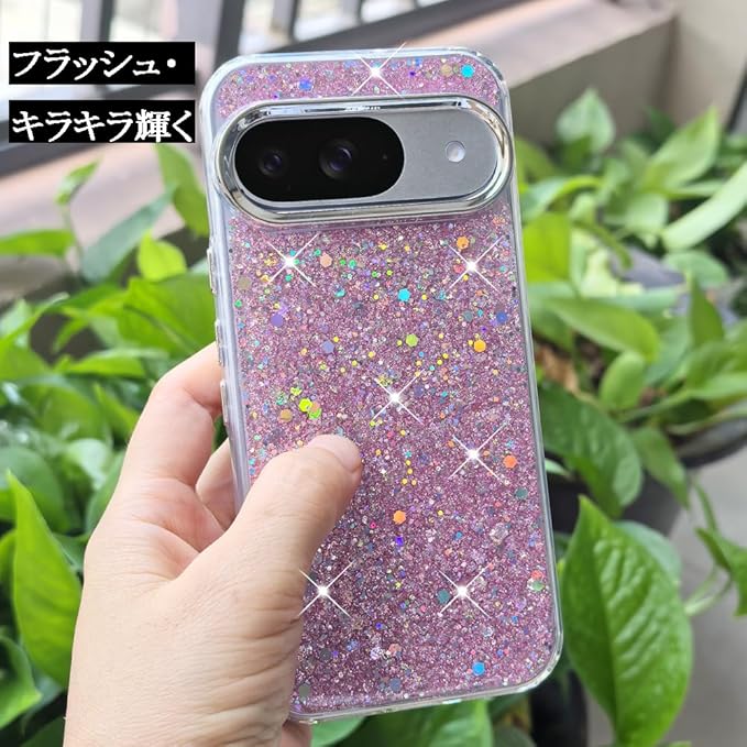 スマホケース 対応 Google Pixel 9a ケース かわいい TPU キラキラ ブリンブリン フラッシュ おしゃれ 女性人気 美しい おもしろい キャラクター 傷防止背面 滑り止め 衝撃吸収 グルピクセル9a 携帯電話カバー (ピンク, Pixel 9A)