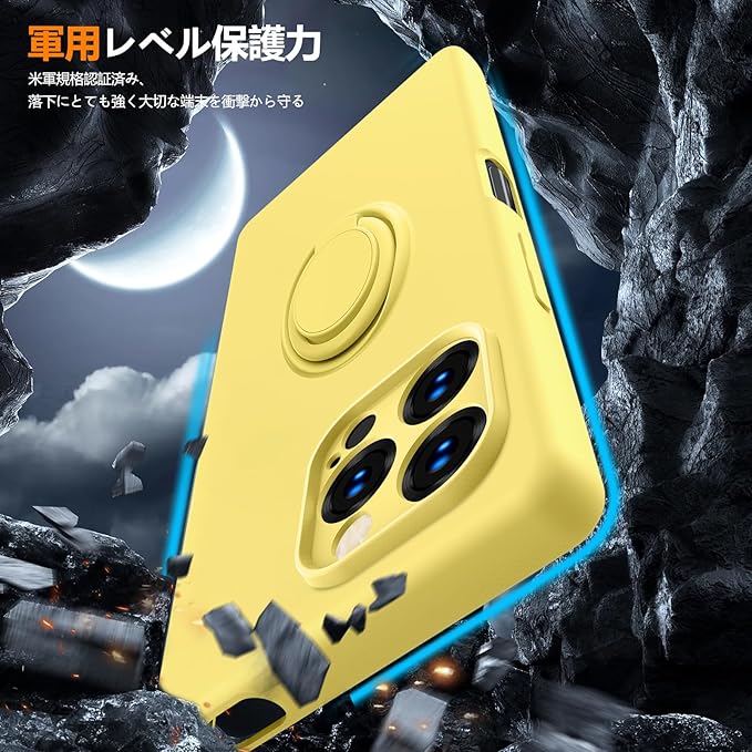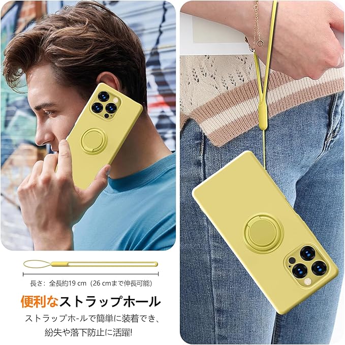 Google Pixel 9A 用 ケース リング付き シリコン 耐衝撃 ストラップホール付き TPU ソフト カバー 薄型 スタンド機能 車載ホルダー対応 リストストラップ 落下防止 防塵 軽量 一体型 変形防止 全面保護カバー ピクセル 9a 用 ケース 黄 W-YZHS-06-05
