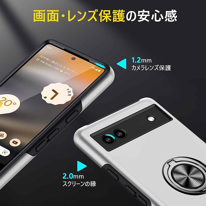 Google Pixel 9A 用ケース リング 耐衝撃 衝撃吸収 全面保護カバー TPU+PCバンパー 二重構造 米軍MIL規格 車載ホルダー対応 擦り傷防止 滑り止め 薄型 軽量 グーグル ピクセル 9a 用カバー 耐久 指紋防止 おしゃれ 人気 携帯カバー 銀 MZ86-09