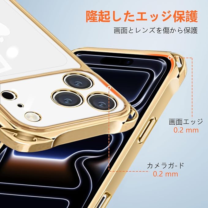 【カメラ周り専用防護 キズを回避】カメラモジュールの周囲に専用防護リムを設け、ケース表面よりわずかに盛り上げた設計としています。机の上に置いた際に、カメラレンズが直接接触面に触れるのを防ぎ、摩擦や異物によるキズを回避します。高硬度素材でカメラ周りの角部も保護し、長期間カメラの性能と外観を良好な状態に維持できます。