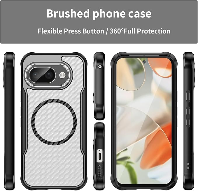 Google Pixel 9a 用 ケース Magnetic対応 クリア 耐衝撃 薄型 米軍MIL規格取得 指紋防止 TPUバンパー+背面PC グーグル ピクセル 9a カバー レンズ保護 滑り防止 ストラップホール付き 黄変防止 滑り防止 携帯カバー 黒 R0115-PX9A-01