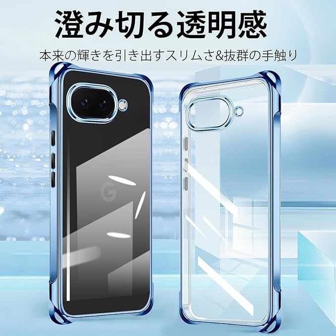 For Google Pixel 9a 用 ケース クリア ショルダー スマホケース ピクセル 9A カバー 肩掛け 縄掛けケース 透明 TPU 薄型 耐衝撃 携帯ケース 紐付き 斜めがけ ストラップ着脱可 織りストラップ付き ネックストラップ 縦/横 2WAY 長さ調整可能 取り外し可能 落下防止 紛失防止 かわいい おしゃれ 女性 男性 (ブルー)