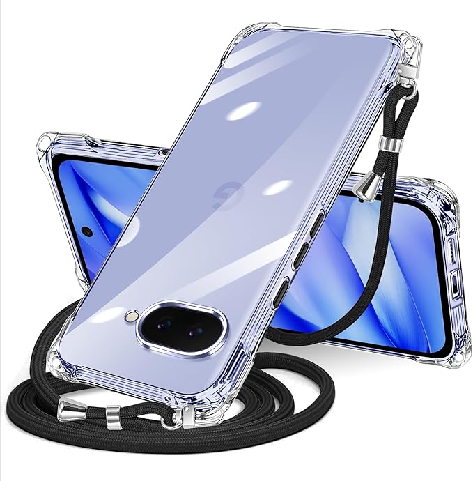Google Pixel 9a 用 ケース クリア ショルダー pixel9a 用 スマホケース ピクセル 9A カバー 肩掛け 斜めかけ 縄掛けケース 耐衝撃 透明 薄型 軽量 TPU 紐付き 斜めがけ 織りストラップ付き ネックストラップ ショルダー 縦/横 2WAY 長さ調整可能 取り外し可能 落下防止 紛失防止 (クリア)