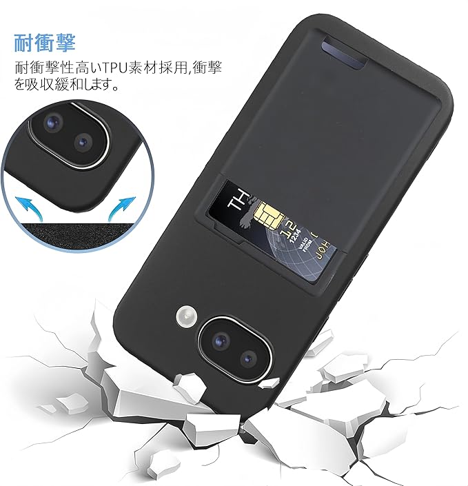 【 Agaiy 】Google Pixel 9A 対応 ケース 背面カード収納 耐衝撃 薄型 軽量(ブラック) グーグル ピクセル9A TPUスマホケース 全面保護 超耐磨 マット質感 ストラップホール付き 携帯便利 pixel9a ケース 黒