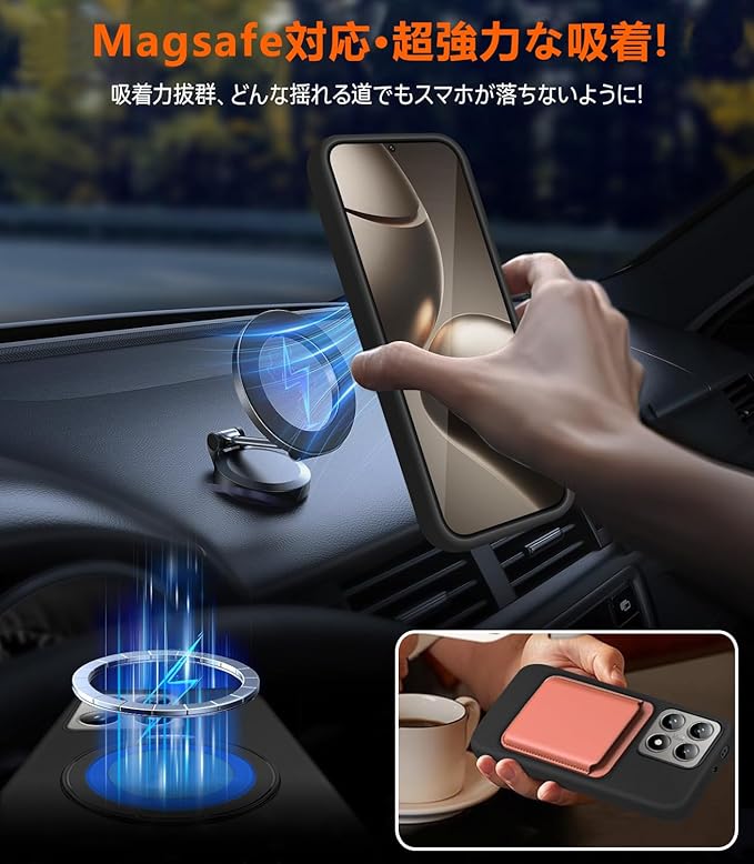 【多機能360度!縦も横も思いのまま!】Google Pixel 9a 用ケースは、革新的な隠し式スタンドデザインを採用しています。360 回転スタンド機能により、縦置き・横置きどちらの状態でも安定して利用でき、0 ~ 150 の間で多角度自由に調整できます。。動画視聴、オンライン授業、リモート会議、ビデオ通話などで大活躍、あらゆる視聴の瞬間をお楽しみください。スタンド台を持ち運ぶ必要がなくなり、外出時にも便利です。手に取るだけでリングとしても使えるので、機能性にも優れています。
