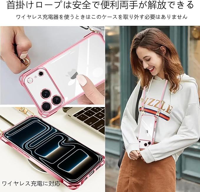 【パーフェクトフィット】iPhone 17 pro max/アイフォン17 pro max 専用にデザイン。お使いの携帯電話のすべての機能、ポート、ボタンに簡単にアクセスできます。ショルダーストラップ付きのケースは、有線および無線の充電をサポートしています。横に肩に掛けることができ、ストラップはいつでも調整および取り外しできます。このアクセサリーはファッションだけでなく、通常のストラップよりも快適で実用的です。 作業、旅行、出張、ショピング、散歩、コンサート、パーティーに最適です。手を離しても、携帯電話を携帯できます。