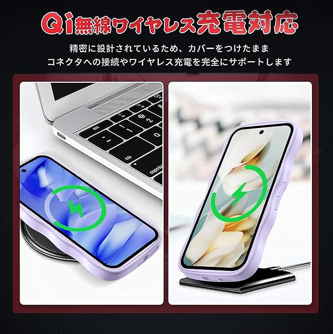【Google Pixel 9A対応】ご購入前に、お使いの携帯電話の正しいモデル/サイズ選択してください。当社のスマホケースの品質に問題がある場合は、お気軽に当社のカスタマーサービスにご連絡ください。可愛波状ケースはワイヤレス充電に対応しています