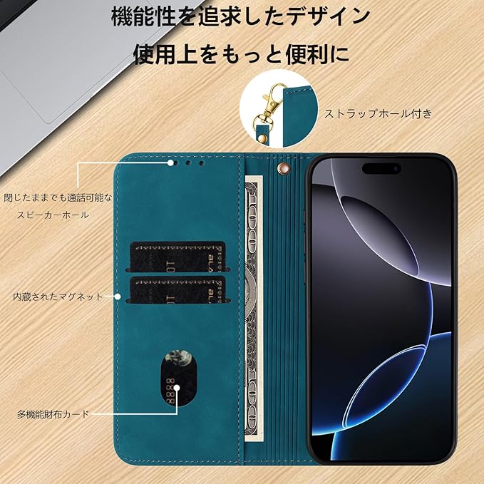 【マグネット内蔵 全面保護】マグネット内蔵の手帳型式で、カバーを閉める時、片手で簡易に開閉することはできます。外側は高品質のPU製で、落下時の衝撃を効果的に吸収してスマホへの直接的な外力を防げるようになっています。内側は柔軟性あるTPUケースで、二重の保護として機能します。破損することはありません、衝撃から本体を各方向で360 保護します。