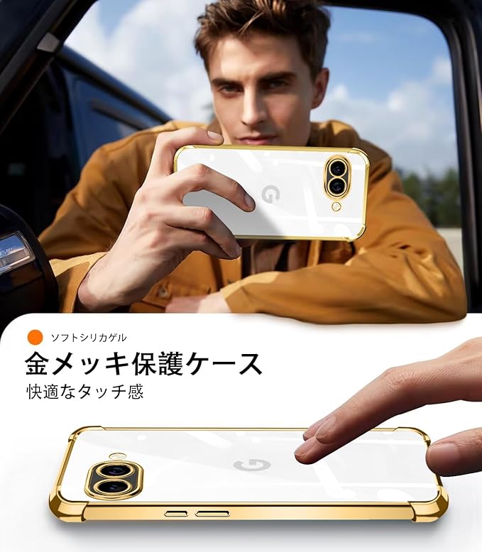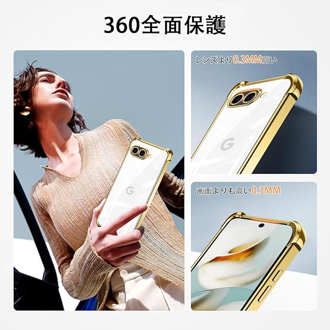 互換 Google Pixel 9a ケース クリア ピクセル9A ケース 耐衝撃 Pixel 9a カバー 柔軟 軽量TPU 透明 薄型 レンズ保護スマホ 落下防止 google pixel 9a スマホケース 滑り止め、すり傷防止、すり傷防止 米軍MIL規格 スマホケース(ゴールド)