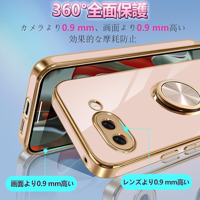 Google Pixel 9a ケース リング付き リング ピクセル9a カバー 耐衝撃 人気 米軍MIL規格 メタリックな質感 TPU 軽量 携帯カバー スタンド機能 車載ホルダー対応 360 回転 指紋防止 (ピンク)