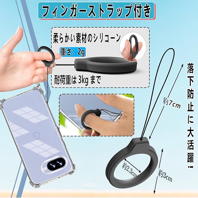 【ストラップ2枚付き & 長さ調整可能 & 両手を解き放つ】本Google Pixel 9Aケースにはフィンガーストラップとネックストラップが付属します(フィンガーストラップ長さ:10cm、ネックストラップ装着時の最大調整長:86cm。)ストラップはいつでも調整および取り外しできます、このアクセサリーはファッションだけでなく、通常のストラップよりも快適で実用的です。 作業、旅行、出張、ショピング、散歩、コンサート、パーティーに最適です。(あなたは受け取るでしょう:1x Google Pixel 9Aケース + 1x フィンガーストラップ+ 1x ネックストラップ)