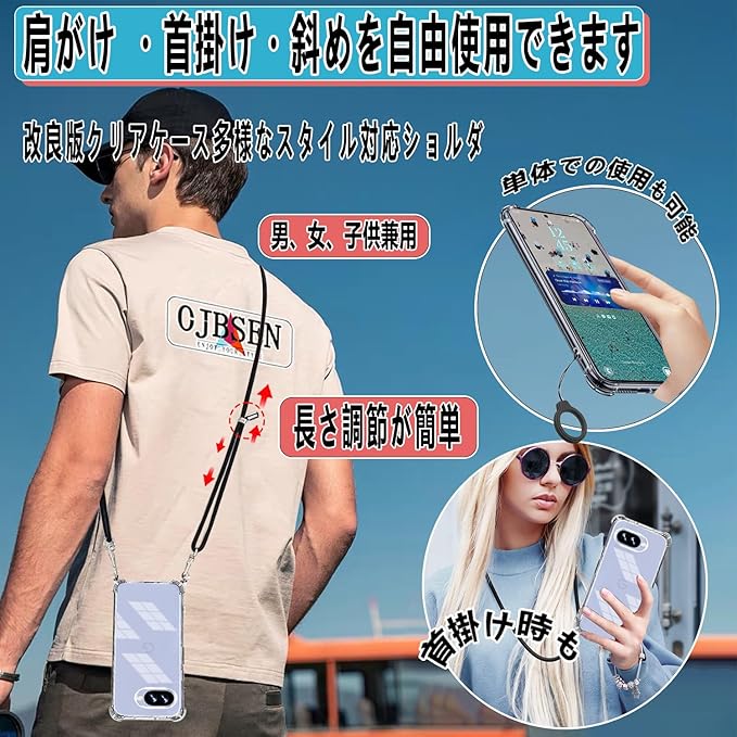 Google Pixel 9a ケース グーグルピクセル9a カバー [ストラップ2枚付き] 調節可能な ショルダー 肩がけ 首掛け 紐付き ストラップホール付き 薄型 透明 PC+軽量 シリコン TPUバンパー [耐衝撃 ワイヤレス充電 傷防止 全面保護 米軍MIL規格 防指紋 カメラ保護] スマホケースPixel 9a(クリア)