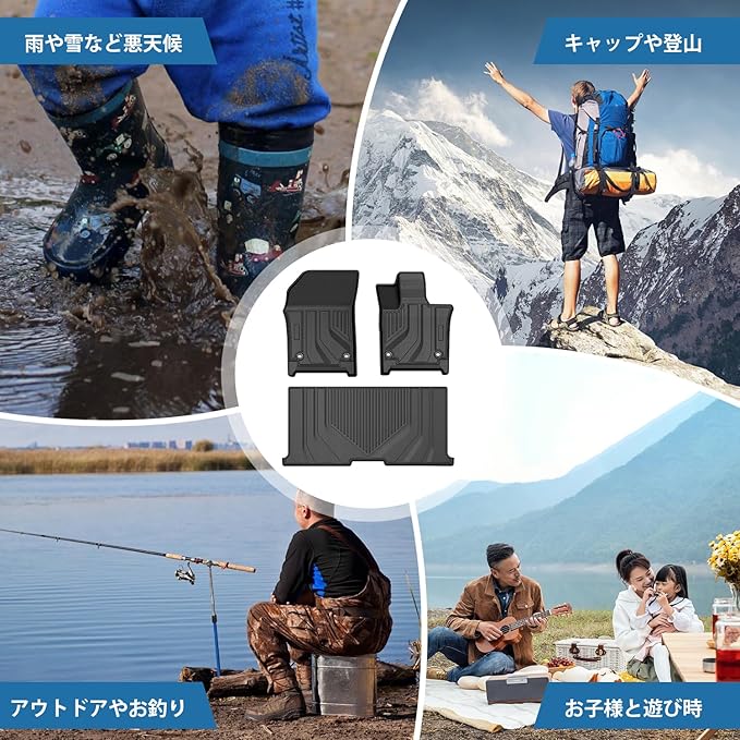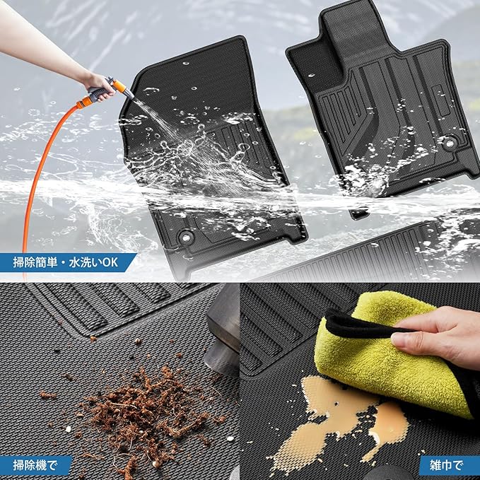 3.【3D立体構造・防水仕様】水、汚れなどの侵入をガードするため、本製品は3D立体構造を採用し、床を常に清潔な状態を保つことができます。また、耐摩耗性と耐汚性にも大変優れて、お車の床を保護し、外での旅行にも最適です。防水性に優れたため、汚れたら、柔らかい布で拭い取ったり、水で丸洗ったりして簡単に汚れを落とすことが出来まして抗菌効果も素晴らしいです。サーフィンや海水浴・スキーなどのアウトドアシーンや部活や習い事の送り迎えなどで活躍します。アウトドアが好きな方にオススメ、ぜひ体験してみてください。