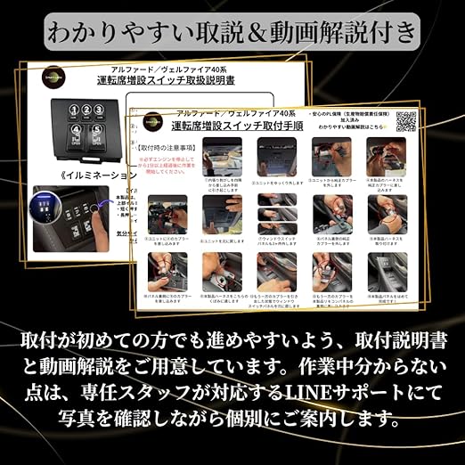 【国家整備士監修・日本企業・安心取付トータルサポート】アルファード/ヴェルファイア40系 動画解説付き アクセサリー 専用設計 運転席増設スイッチ(イルミネーション付き) カプラーオン 取付簡単 増設 ドアスイッチ ムーンルーフ サンシェード スライドドア パワーバックドア 操作可能 カプラーオン 多機能イージーオープンキット カスタムパーツ 実車装着テスト済 PL保険加入済 (適格請求書対応)