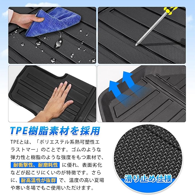 3.【防水仕様】濡れた水着や釣り工具などの水漏れで車内がびしょびしょになるのが嫌?そこで、当店の立体3dラゲッジマットが耐水性もあり、雨や雪の日でもご心配及びません。汚れても水で洗い流すことができます。お手入れがらくらく。