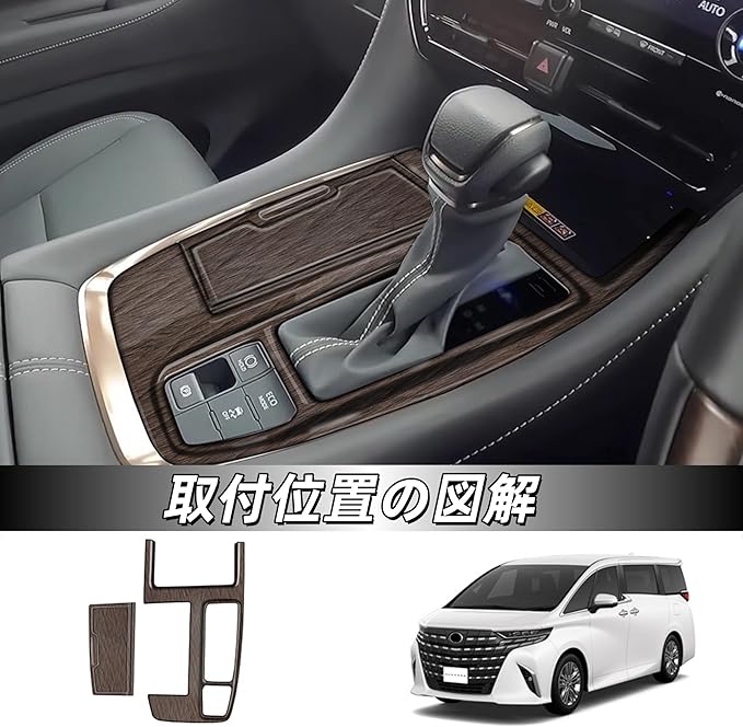 新型アルファード/ヴェルファイア 40系に対応 ガラスリフ シフトパネルカバー ガーニッシュ シフトベースインテリアパネル 専用グッズ 内装パーツ(木目調)