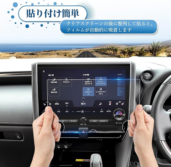 【指紋防止・カースクリーン保護】指紋防止コーティングを施し、指がフィルムに触れても指の油分が残りにくく、ヴェルファイア 40系の後席ディスプレイを保護します。 指紋・油汚れ・水汚れに強く、汗・皮脂・化粧品等が画面に付いても拭き取るだけです。 自由かつ快適に操作できます。 ほこりの多い環境では、ほこりによる液晶画面の汚染を防ぎ、スクリーンの清潔感を効果的に保護し、耐用年数を延ばします。