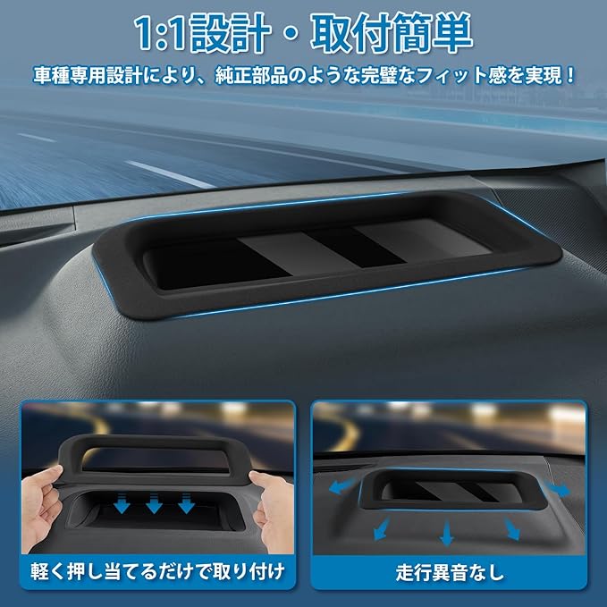 4.【1:1設計・取付簡単】:車両に合わせた1:1設計のため、ご愛車にぴったりフィットして、走行時のガタつきや異音をしっかり防止します。裏面には両面テープ付属で、取り付けも簡単!装着部分をきれいに拭いたら、剥離紙をはがして軽く押し当てるだけで完了。