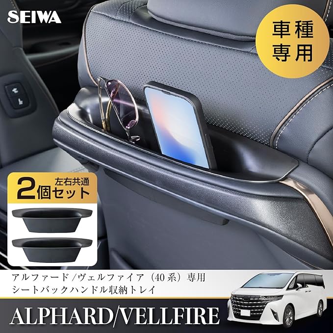 セイワ(SEIWA) 車種専用品 トヨタ アルファード ヴェルファイア (40系) 専用 シートバックハンドルトレイ 収納ポケット ゴミ箱 IMP412 【左右 2個セット】【 シリコンパッド付属】 傷やカタカタ音にも安心 専用設計でピッタリフィット