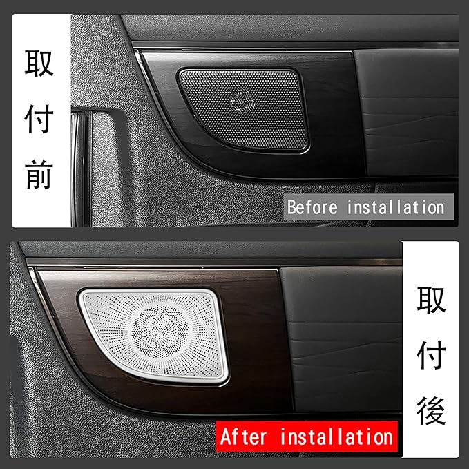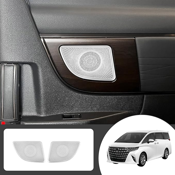 新型アルファード/ヴェルファイア 40系に対応 アクセサリー 中列ドアスピーカーカバー ドアスピーカーガーニッシュ 金属製 専用 グッズ 内装パーツ (シルバー)