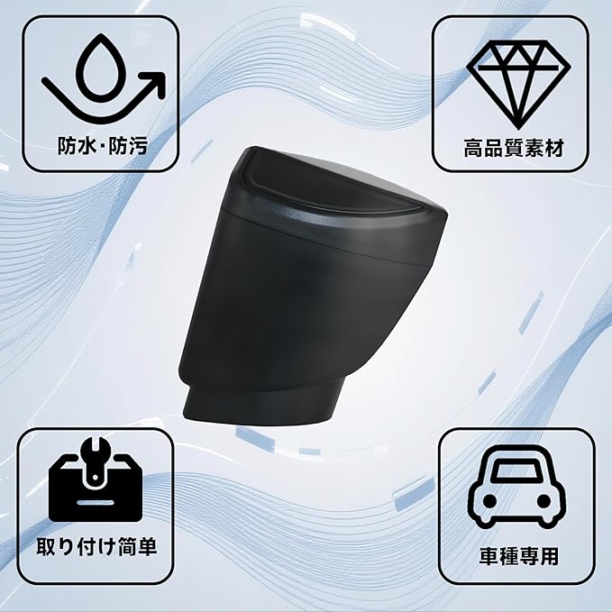 2、【片手でワンタッチ開閉】運転中でも安全・簡単なゴミ捨てを実現。 軽く押すだけで開く便利なフタ付き。運転中や移動中でも片手で簡単にティッシュや菓子の包み紙などを捨てられ、運転安全性を向上させます。ゴミや嫌な臭いが車内に広がるのを防止し、清潔で快適な車内空間を保ちます。
