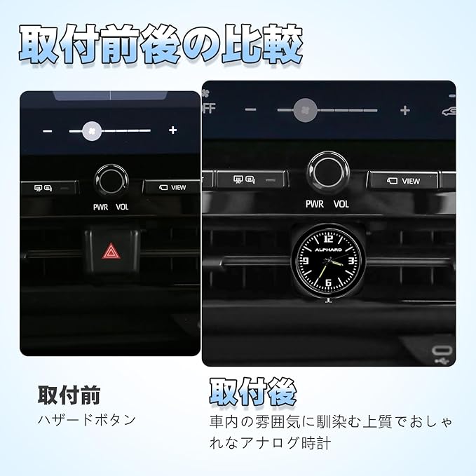 アルファード ヴェルファイア 40系 ハザードウォッチ クロック車載時計 車用クオーツ カーダッシュボードウォッチ ラウンドアナログクォーツ Alphard/Vellfireアクセサリー