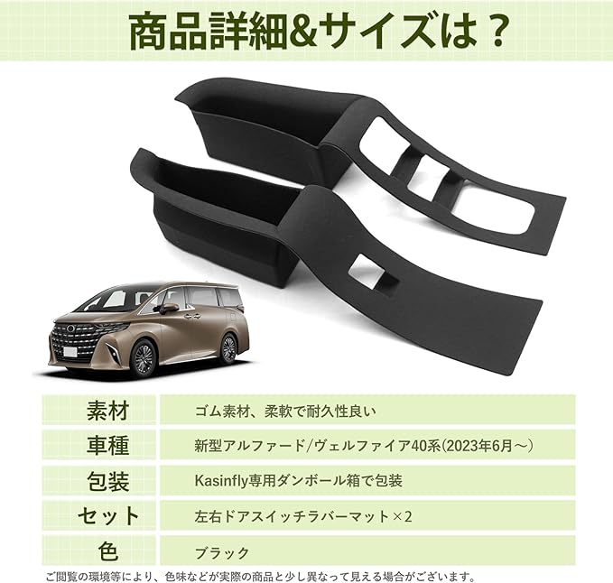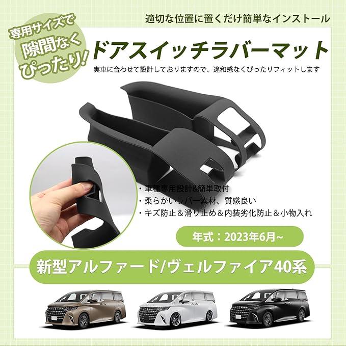アルファード40系用 ドアスイッチラバーマット キズ防止 運転席 助手席 ノンスリップマット 傷隠し ドアポケットカバー ヴェルファイアに 内装 カスタムパーツ ノイズ軽減 小物入れ 滑り止め ブラック