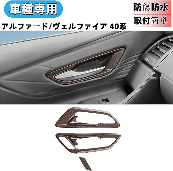 新型 アルファード/ヴェルファイア40系 に適合 アクセサリー インナードアハンドルカバー インナードアハンドルプロテクター 専用カスタム 内装パーツ (木目調ブラウン)