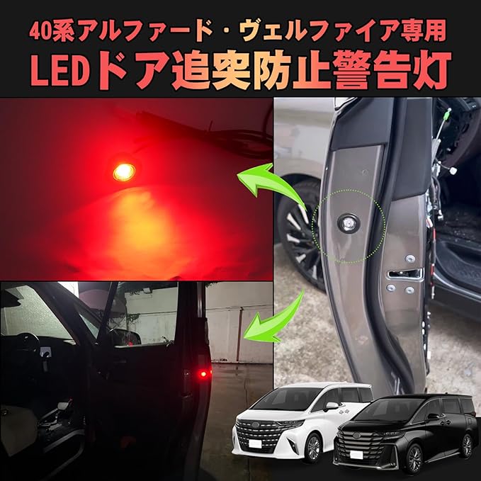 アルファード40系 ドア追突防止警告灯 40アルファード 赤点滅 フラッシュ点滅 LED警告灯 ドア開閉非常信号灯 ドア開けた時に後方からの追突防止 乗り降り安全 ドアオープン ワーニングランプ 車種専用設計 純正交換 カプラーON設計 取付簡単 アクセサリー カスタム パーツ AGH4#W/AAHH4#W 取付工具付き 左右2個セット