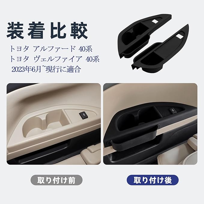 【適合車種】トヨタ アルファード 40系 トヨタ ヴェルファイア 40系 2023年6月~現行に適合します。左ハンドルと右ハンドル対応、製品はオリジナルのサイズに合わせてカスタマイズされており、完璧にフィットします。ご購入前に適合車種と取付箇所の形状をご確認ください。
