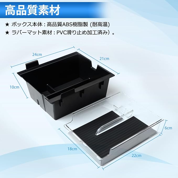 2.【素材】:本体:高品質ABS樹脂製 (耐高温) 。ラバーマット素材:環境にやさしいゴム(滑り止め加工済み)。防塵、防水、防キズ、防雑音、小物が動いた際のカタカタ音を減少する。 日常使用で、ゴム素材なので汚れても水洗いをすれば繰り返し使用OK。