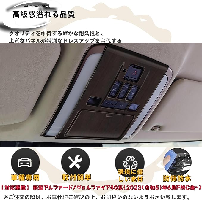 適用 新型 アルファード40系 ヴェルファイア 40系 カスタム アクセサリー パーツ 専用車種 室内装 用品 グッズ インテリア フロントルームランプ ガーニッシュ パネル カバー 艶消木目調ブラウン