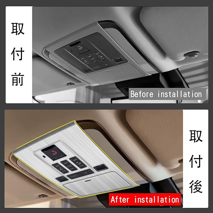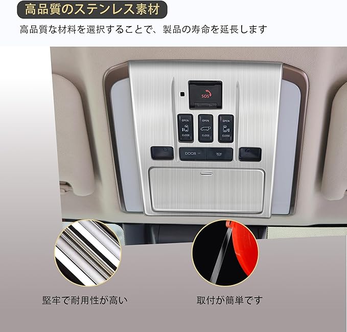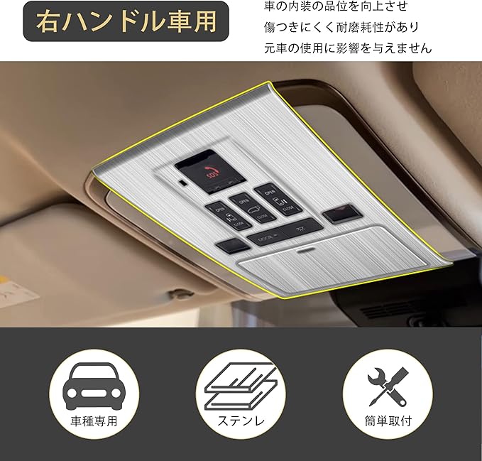 新型アルファード/ヴェルファイア 40系に対応 アクセサリー 金属フロントルームランプ ガーニッシュ ルームランプパネル リーディングランプカバー 専用 グッズ 内装パーツ (シルバーヘアライン)