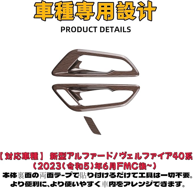 新型 アルファード ヴェルファイア 40系に対応 専用 インナードアハンドルパネルカバーカスタムパーツ アクセサリー 室内装グッズ (木目調)