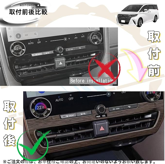 新型アルファード40系 ヴェルファイア/ベルファイア40系 カスタムアクセサリーパーツ センターエアコンスイッチパネルカバー 車種専用グッズ 内装 ABS樹脂製 木目調