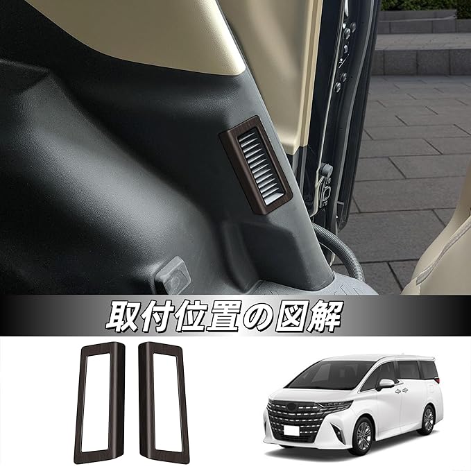 新型アルファード/ヴェルファイア 40系に対応 アクセサリー センター エアコン 2列目 吹き出し口 パネル カバー ガーニッシュ 専用 グッズ 内装パーツ(艶消し木目調)