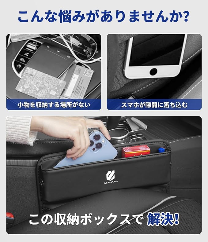 【専用ロゴ付き・高級感溢れ】この隙間収納ボックスは ALPHARD 専用ロゴとおしゃれなデザインでご愛車の内装に合わせやすい、高級感あふれる雰囲気を仕上げります。この隙間収納ケースのカラーはブラック・カーボン調の2色でご用意します。お好みに合わせて自由にお選びいただくことができます。【適用車種】ALPHARD アルファード 20系 30系 40系に適用します。