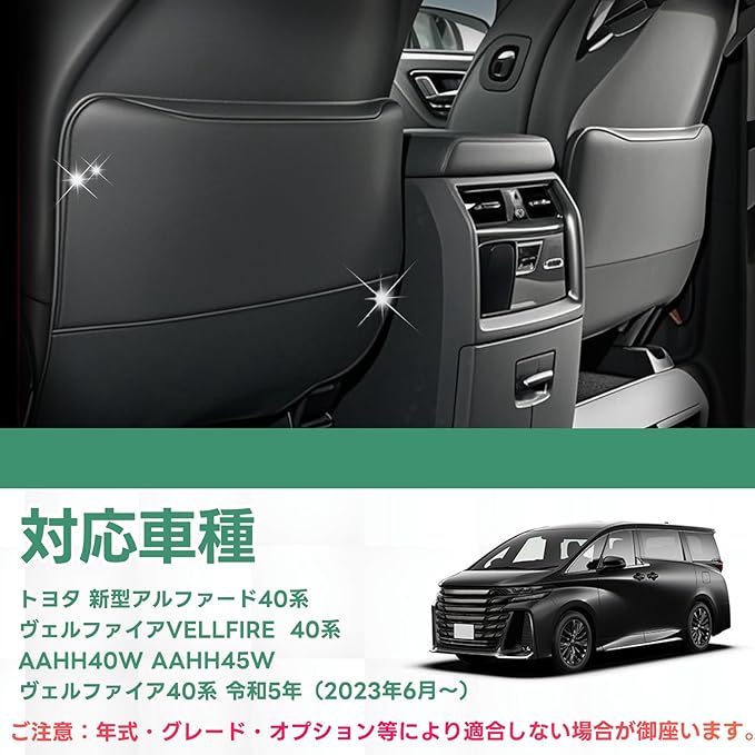 【後部座席 キックガード 適用車種】トヨタ 新型アルファード40系/ヴェルファイアVELLFIRE 40系 AAHH40W AAHH45W ヴェルファイア40系 令和5年(2023年6月〜) 実車3Dスキャン設計によりシート曲面に隙間ゼロ密着、完全密着プロテクション。ご注意:ご購入の前に、お車と画像の年式・型式が適合しているかご確認ください。
