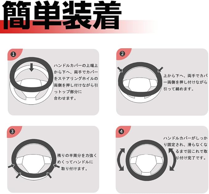 *ハンドルの汚れ・傷を徹底防護:日々の手垢、長年使用による磨耗、爪や硬質物の引っかき傷などをしっかりカバーし、愛車ハンドルの美しさを長持ちさせる。