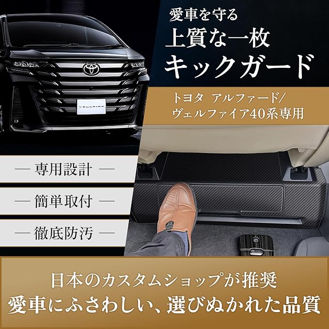 【新改良・国家整備士監修・ 安心トータルサポート】アルファード/ヴェルファイア40系 専用 キックガード シート下カバー 無地ブラック しわゼロ梱包 PL保険加入済 動画解説 傷防止 汚れ防止 簡単取付 実車装着テスト済 適格請求書対応