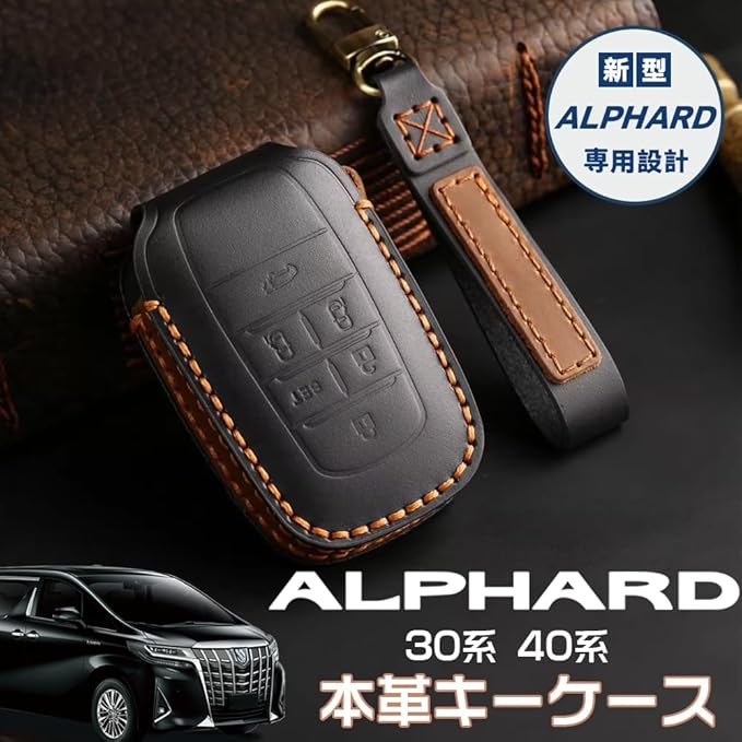 LEXLEY 新型キーケース トヨタ ALPHARD 30系 40系 専用 本革 6ボタン レザー キーカバー キーホルダー スマートキー ALPHARDロゴ付 キズ防止 カスタム ブラック