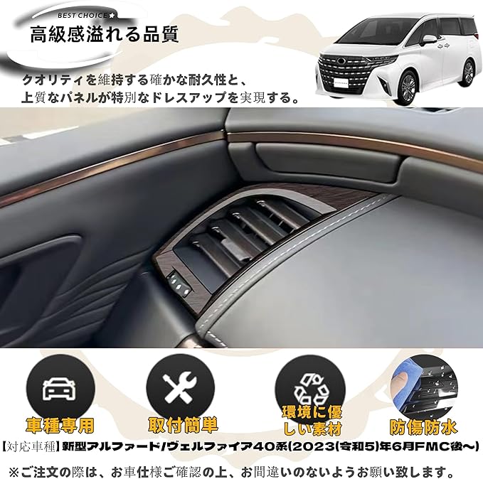 適用 新型 アルファード40系 ヴェルファイア 40系 カスタム アクセサリー パーツ 専用車種 室内装 用品 グッズ インテリア サイド エアコンソール吹出し口 ガーニッシュ パネル カバー 木目調ブラウン