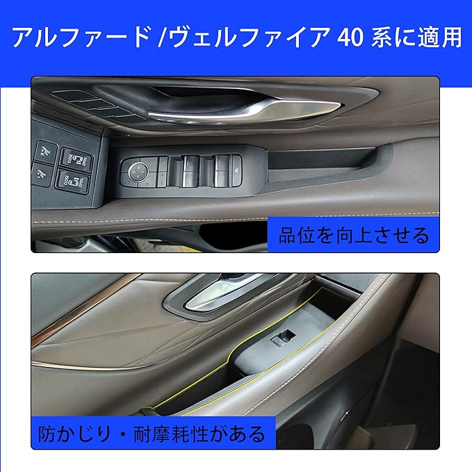 【適合車種】Alphard/Vellfire 40 シリーズに適用するよう設計されており、原車の構造に密着しており、インテリアの高級感を瞬時にアップグレードします。シームレスな取り付けで、元のインテリアを損傷することはありません。