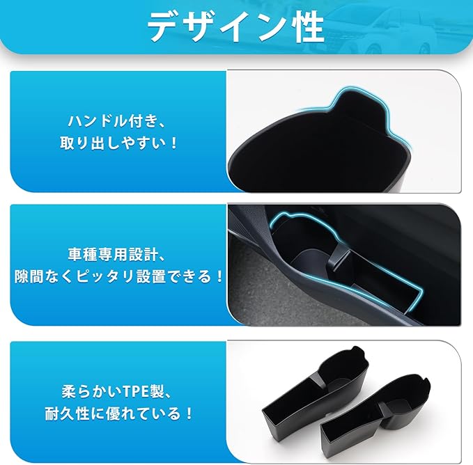 3.【車種専用設計】:車種専用に設計、隙間なくピッタリ設置できる。ドアポケット内部の質感に近似、後付け感のない自然なフィッティング!