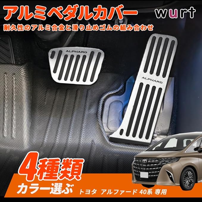 適合トヨタ アルファード 40系(2023年6月~) アルミペダル カバー ブレーキペダル 工具不要 専用ロゴ 取付簡単 内装 カスタム アクセサリー 防キズ 防汚れ 滑り止め 2点セット (シルバー)