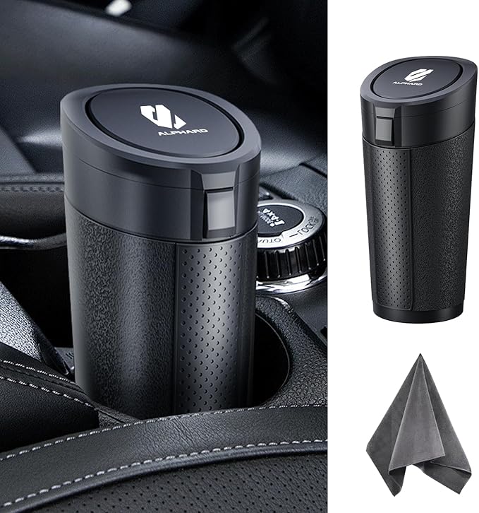 アルファード 車用ゴミ箱 スリム ボトル型 ソフトゴミ箱 蓋を開ける2つの方法、Alphard アルファード 40系 30系 20系 カスタム アクセサリー 内装パーツ、小物入れ おしゃれ ゴミ箱 車載 車内便利 カー用品 +洗車タオル1枚 (ブラック, アルファード)