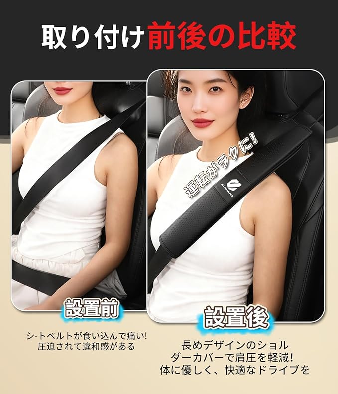 【機能】長距離運転の完璧な選択で、旅の疲れを軽減するのに役立ちます。このシートベルトクッション は、緩衝材を用いてシートベルトの圧力を低減する。これにより、運転中にシートベルトが首、鎖骨、肩に衝突することによる痛みや擦り傷を減らすことができます。ベルトが服をこするのを防ぎ、大切な服を守ることもできます。