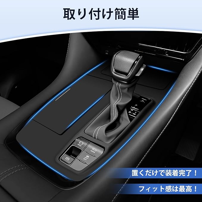 5.【取付もお手入れも簡単】:既存のシフトパネルに置くだけでお手軽に装着し、脱着も簡単です。また、水洗い可能ですので、お手入れも楽々になります。【取り付け説明】取り付けの前に、シフトパネルと製品の裏面をきれいに拭き取り、ホコリや汚れを取り除いてください。なお、取り付け後も2週間に一度程度、同様に軽く拭き取っていただくことで、ホコリなどの堆積を防ぐことができますので、定期的なお手入れをお願いいたします。