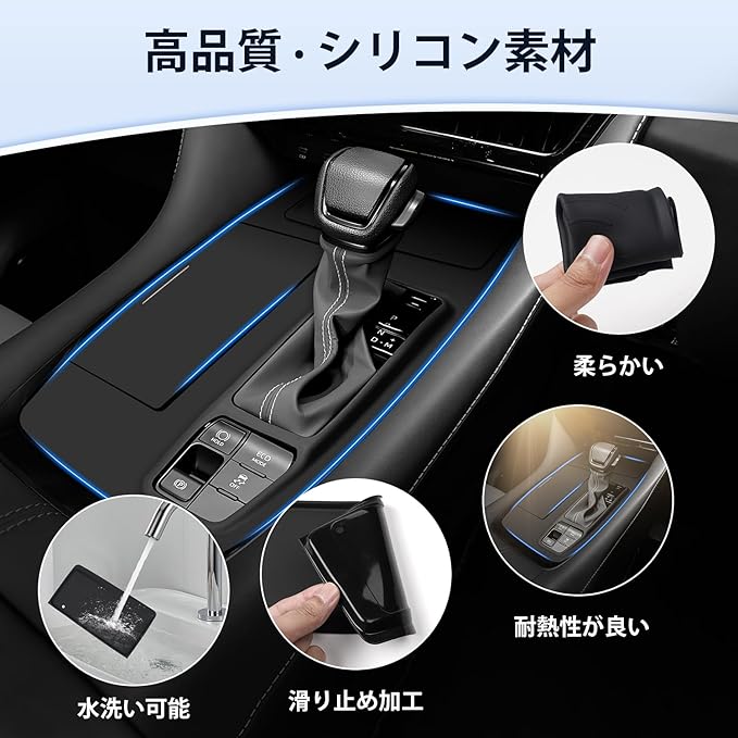4.【セット内容&素材】:40アルファードシフトパネル本体*1。無毒・無臭のシリコーン素材を採用し、耐摩擦性と耐熱性に優れ、高温の環境でも変形しません。さらに、カタカタ音も無く、運転中の振動による転回やズレを防止します。