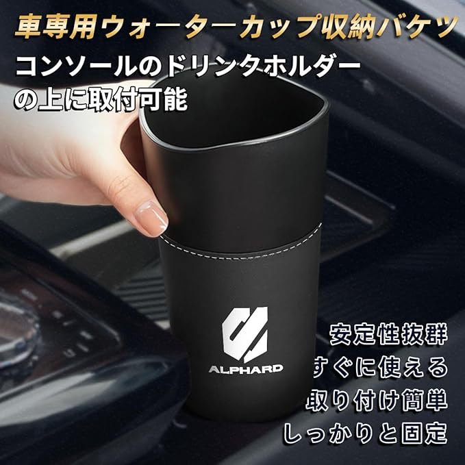 アルファード 車載ゴミ箱 コンパクトポータブル 対応 Alphard 40系 30系 車 インテリア アクセサリー の革とABS素材(ALPHARD,ブラック)